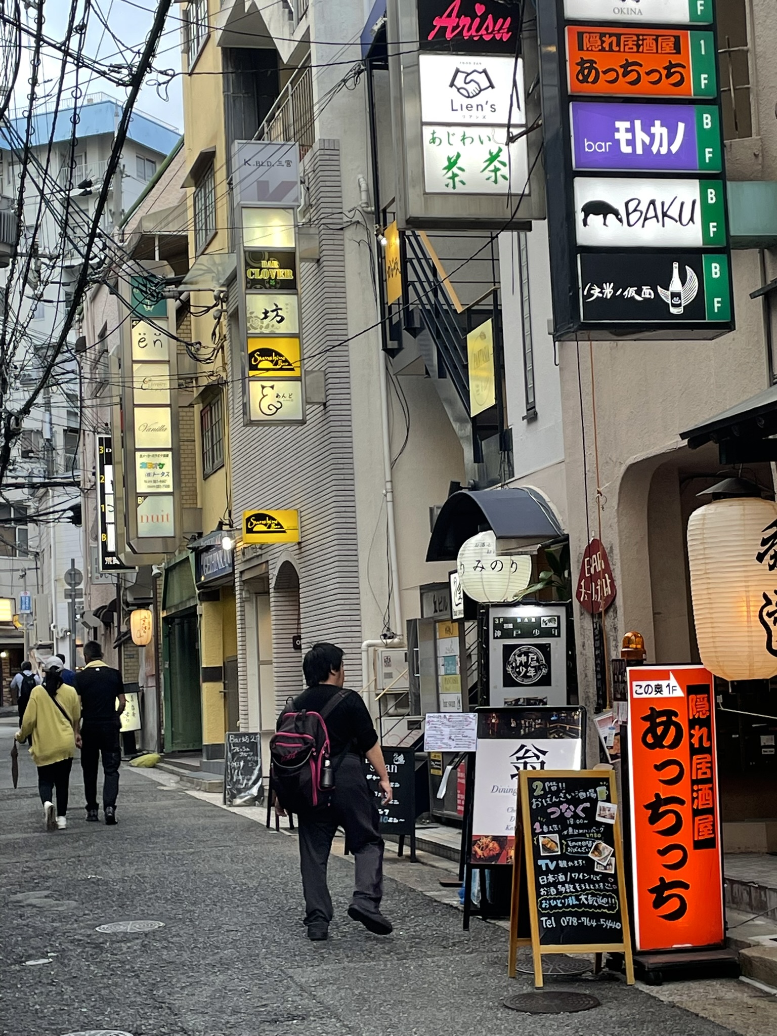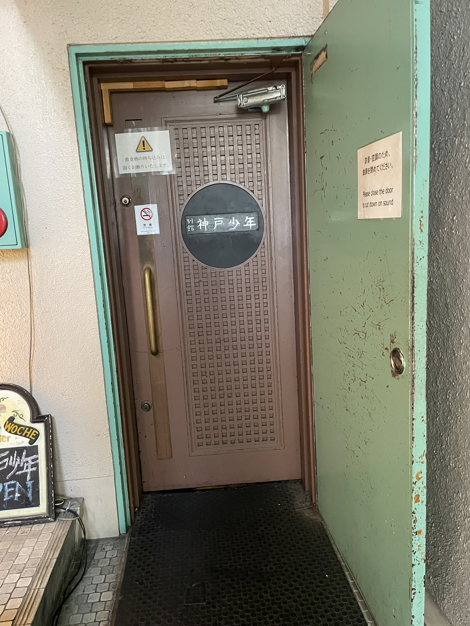 その看板のある通りを北に上がって行くと、ビルの入り口にオレンジ色の「あっちっち」という看板と奥に神戸少年の看板が見えて来ます。(写真参照) そこがビルの入り口です。